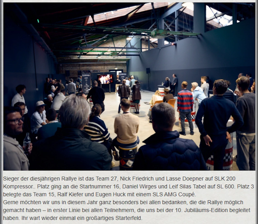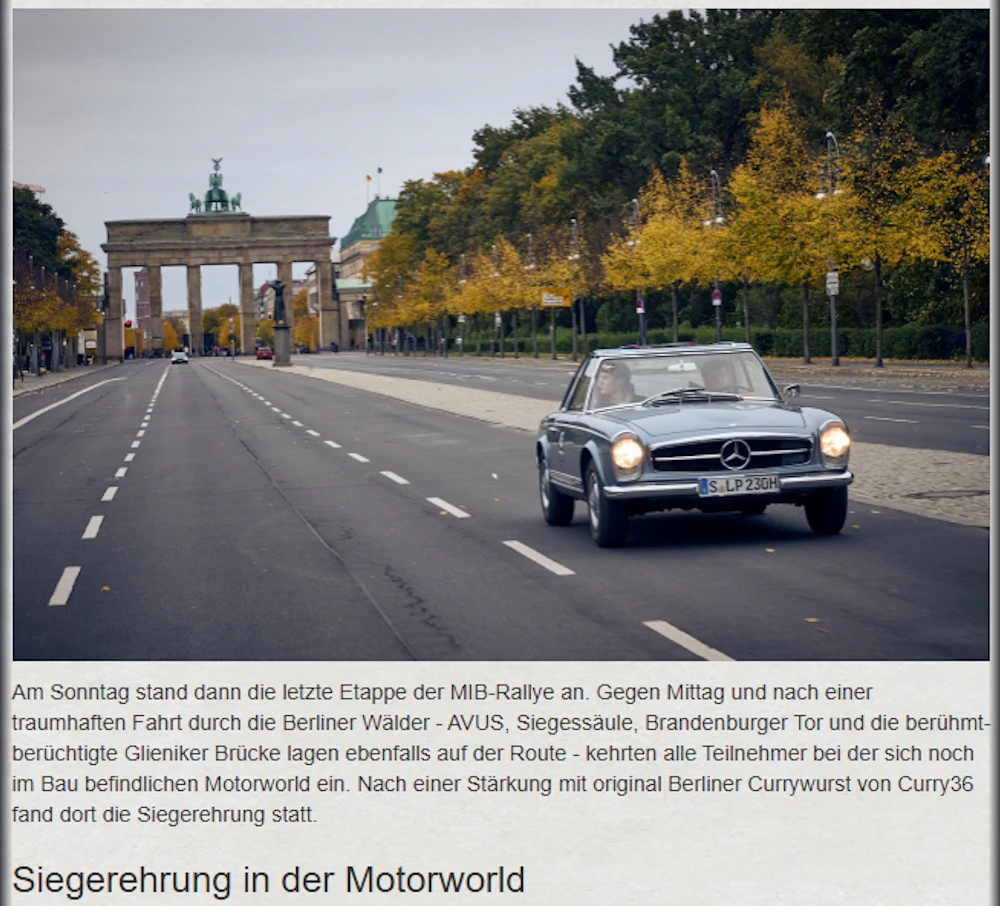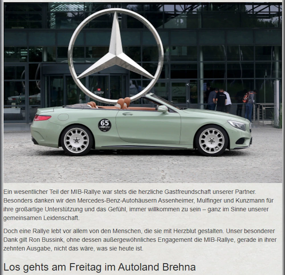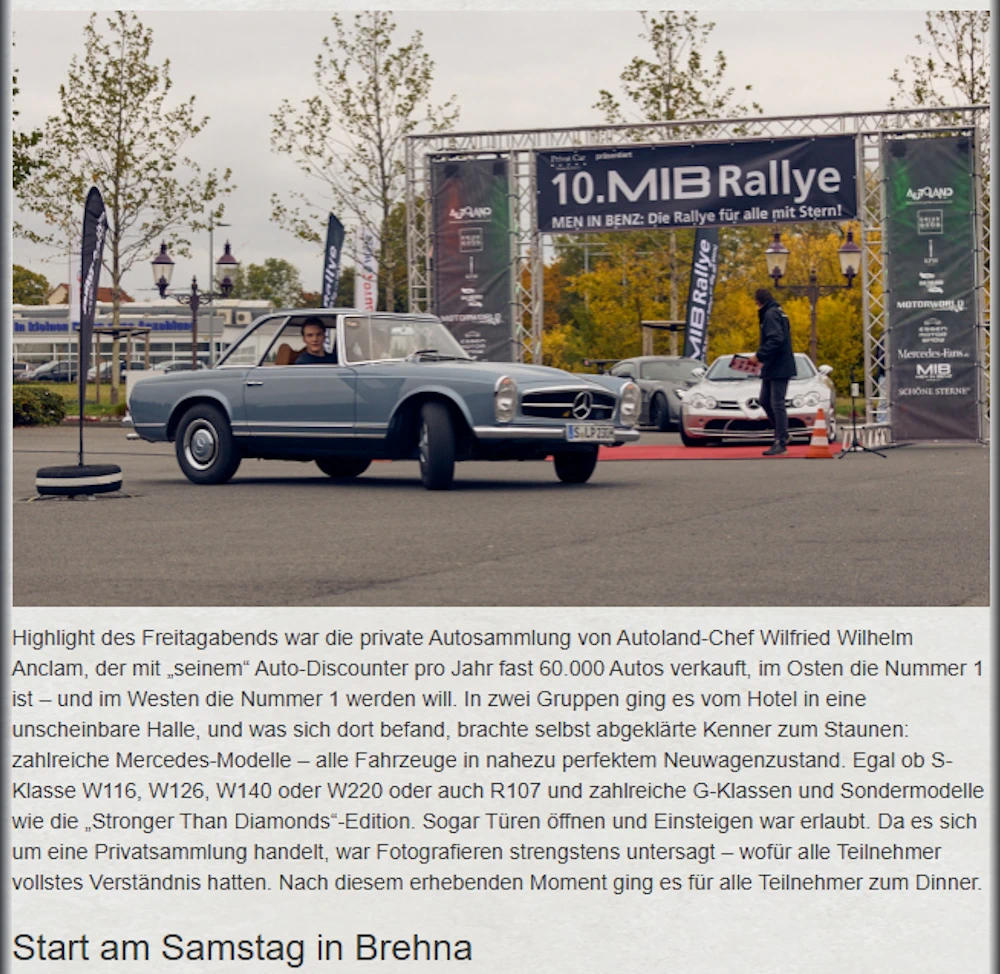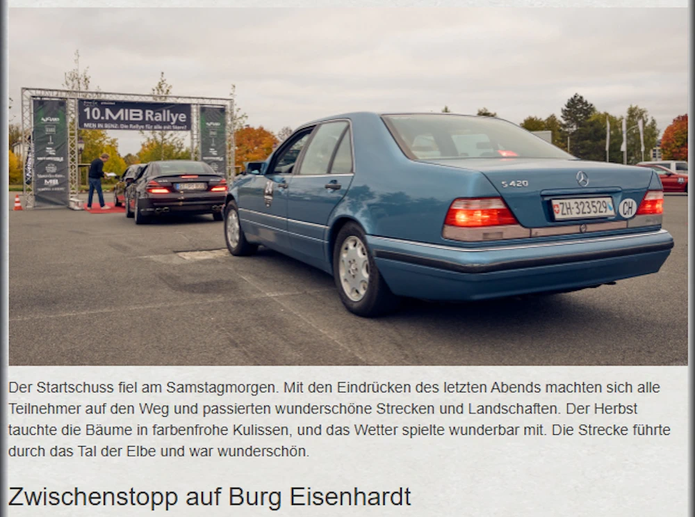 Jubiläumsedition: 10. MIB-Rallye 2025 Automobile Schätze und königliches Porzellan: So war die 10. MIB-Rallye Erstellt am 15. Oktober 2025 Von Mercedes-Fans Redaktion // Bilder: Guido ten Brink & Christian Kremer In diesem Jahr sollte die MIB-Rallye 10 Jahre alt werden. Die MIB-Rallye steht nicht nur für schöne Autos mit Stern und faszinierende Strecken, sondern vor allem für Begegnungen, Erlebnisse und eine einzigartige Gemeinschaft, die von Jahr zu Jahr gewachsen ist. Viele Freundschaften sind daraus entstanden, und noch immer steht diese besondere Emotion im Mittelpunkt, die wir LeBENZgefühl nennen. Daran wird sich auch nichts ändern. Ein Blick zurück – 10 Jahre MIB-Rallye Zahlreiche Persönlichkeiten wie Norbert Haug, Ellen Lohr, der unvergessene Jochen Maas, Klaus Ludwig, Clemens Schickentanz, Lance David Arnold und viele weitere haben der MIB-Rallye mit ihrer Leidenschaft für den Stern eine besondere Note verliehen. In den vergangenen Jahren führte uns die Rallye zu vielen beeindruckenden Stationen – vom DTM-Rennen in Hockenheim über Besuche bei Klassik-Experten wie HK Engineering und Mechatronik bis hin zur historischen Tankstelle in Wiesloch, wo Bertha Benz einst auf ihrer legendären Fahrt nachgetankt hat. Auch diesmal dürfen wir uns auf außergewöhnliche Partner freuen. Starke Partner Ein wesentlicher Teil der MIB-Rallye war stets die herzliche Gastfreundschaft unserer Partner. Besonders danken wir den Mercedes-Benz-Autohäusern Assenheimer, Mulfinger und Kunzmann für ihre großartige Unterstützung und das Gefühl, immer willkommen zu sein – ganz im Sinne unserer gemeinsamen Leidenschaft. Doch eine Rallye lebt vor allem von den Menschen, die sie mit Herzblut gestalten. Unser besonderer Dank gilt Ron Bussink, ohne dessen außergewöhnliches Engagement die MIB-Rallye, gerade in ihrer zehnten Ausgabe, nicht das wäre, was sie heute ist. Los gehts am Freitag im Autoland Brehna Am Freitagnachmittag trafen sich alle Teilnehmer der diesjährigen MIB-Rallye bei Autoland in Brehna. Auf den Parkplatz des Hotels rollten wieder die schönsten Sterne. Vom R107, SL 600 R129 über SLR, 300 SL Flügeltürer, GT Black Series bis hin zur Roten Sau und zum nagelneuen AMG GT 63 SE Performance war wirklich jedes Segment vertreten. Fotografieren verboten! Highlight des Freitagabends war die private Autosammlung von Autoland-Chef Wilfried Wilhelm Anclam, der mit „seinem“ Auto-Discounter pro Jahr fast 60.000 Autos verkauft, im Osten die Nummer 1 ist – und im Westen die Nummer 1 werden will. In zwei Gruppen ging es vom Hotel in eine unscheinbare Halle, und was sich dort befand, brachte selbst abgeklärte Kenner zum Staunen: zahlreiche Mercedes-Modelle – alle Fahrzeuge in nahezu perfektem Neuwagenzustand. Egal ob S-Klasse W116, W126, W140 oder W220 oder auch R107 und zahlreiche G-Klassen und Sondermodelle wie die „Stronger Than Diamonds“-Edition. Sogar Türen öffnen und Einsteigen war erlaubt. Da es sich um eine Privatsammlung handelt, war Fotografieren strengstens untersagt – wofür alle Teilnehmer vollstes Verständnis hatten. Nach diesem erhebenden Moment ging es für alle Teilnehmer zum Dinner. Start am Samstag in Brehna Der Startschuss fiel am Samstagmorgen. Mit den Eindrücken des letzten Abends machten sich alle Teilnehmer auf den Weg und passierten wunderschöne Strecken und Landschaften. Der Herbst tauchte die Bäume in farbenfrohe Kulissen, und das Wetter spielte wunderbar mit. Die Strecke führte durch das Tal der Elbe und war wunderschön. Zwischenstopp auf Burg Eisenhardt Die Mittagspause fand in Bad Belzig auf Burg Eisenhardt statt. Den MIB-Rallye-Teilnehmern war es erlaubt, auf dem Burgplatz zu parken – ein Bild für die Götter. Ankunft in der Königlichen Porzellan-Manufaktur Im Anschluss machten sich alle auf den Weg in die Hauptstadt Berlin. Ziel des Samstagabends war die Königliche Porzellan-Manufaktur (KPM). Bei KPM wird hochwertiges Porzellan handgefertigt – sie ist eine der ältesten Porzellanmanufakturen Europas. Gastgeber Jörg Woltmann begrüßte alle Teilnehmer und lud nach einer spannenden Führung durch die Manufaktur zum anschließenden Dinner im KPM-Hotel ein. Die Tagessieger an beiden Tagen wurden unter anderem mit extra produzierten, limitierten MIB-Rallye-Kaffeebechern von KPM geehrt. Start am Sonntag bei KPM in Berlin Am Sonntag stand dann die letzte Etappe der MIB-Rallye an. Gegen Mittag und nach einer traumhaften Fahrt durch die Berliner Wälder – AVUS, Siegessäule, Brandenburger Tor und die berühmt-berüchtigte Glieniker Brücke lagen ebenfalls auf der Route – kehrten alle Teilnehmer bei der sich noch im Bau befindlichen Motorworld ein. Nach einer Stärkung mit original Berliner Currywurst von Curry36 fand dort die Siegerehrung statt. Siegerehrung in der Motorworld Sieger der diesjährigen Rallye ist das Team 27, Nick Friedrich und Lasse Doepner auf SLK 200 Kompressor.. Platz ging an die Startnummer 16, Daniel Wirges und Leif Silas Tabel auf SL 600. Platz 3 belegte das Team 15, Ralf Kiefer und Eugen Huck mit einem SLS AMG Coupé. Gerne möchten wir uns in diesem Jahr ganz besonders bei allen bedanken, die die Rallye möglich gemacht haben – in erster Linie bei allen Teilnehmern, die uns bei der 10. Jubiläums-Edition begleitet haben. Ihr wart wieder einmal ein großartiges Starterfeld. Ganz besonders bedanken wollen wir uns in diesem Jahr beim Team Milas auf SL 55 AMG. Team Milas ist nämlich bereits zum 10. Mal dabei gewesen und hat keine einzige Ausgabe der MIB-Rallye verpasst – sagenhaft! Ein großes DANKESCHÖN an alle! Ebenso danken wir allen Partnern und Sponsoren, die die MIB-Rallye in diesem Jahr möglich gemacht haben. Vielen Dank an Wilfried Wilhelm Anclam für die spannenden Einblicke in das Autoland und die Privatsammlung. Vielen Dank an Jörg Woltmann für die einzigartige Möglichkeit, die Königliche Porzellan-Manufaktur hautnah zu erleben. Vielen Dank an Andreas Dünkel, der uns die „Schlüssel“